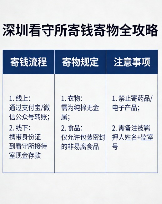 家属如需向嫌疑人传递衣物、生活用品,需通过深圳看守所指定的顾送渠道,且物品需严格符合规定:衣物不得有金属拉链、纽扣、尖锐装饰,不得携带外套、被子等大件物品;生活用品仅限牙刷、毛巾、肥皂等无异味、无危险的普通物品,食品、药品、电子产品一律禁止顾送。深圳各看守所顾送时间固定(一般为每周二、周四),律师可协助家属确认顾送时间、办理顾送手续,避免物品被拒收。